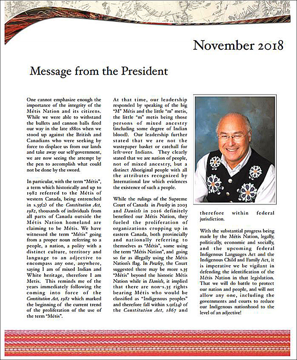 Who is Metis Nation statement MNC President 11 2018